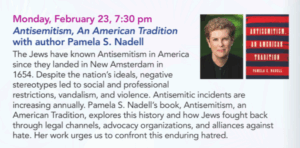Join award-winning historian Pamela S. Nadell for a conversation about her timely and compelling new book Antisemitism, an American Tradition as she explores the deep roots of antisemitism in the U.S.—from colonial times to the present—and the powerful ways in which Jewish communities have resisted hatred and bigotry